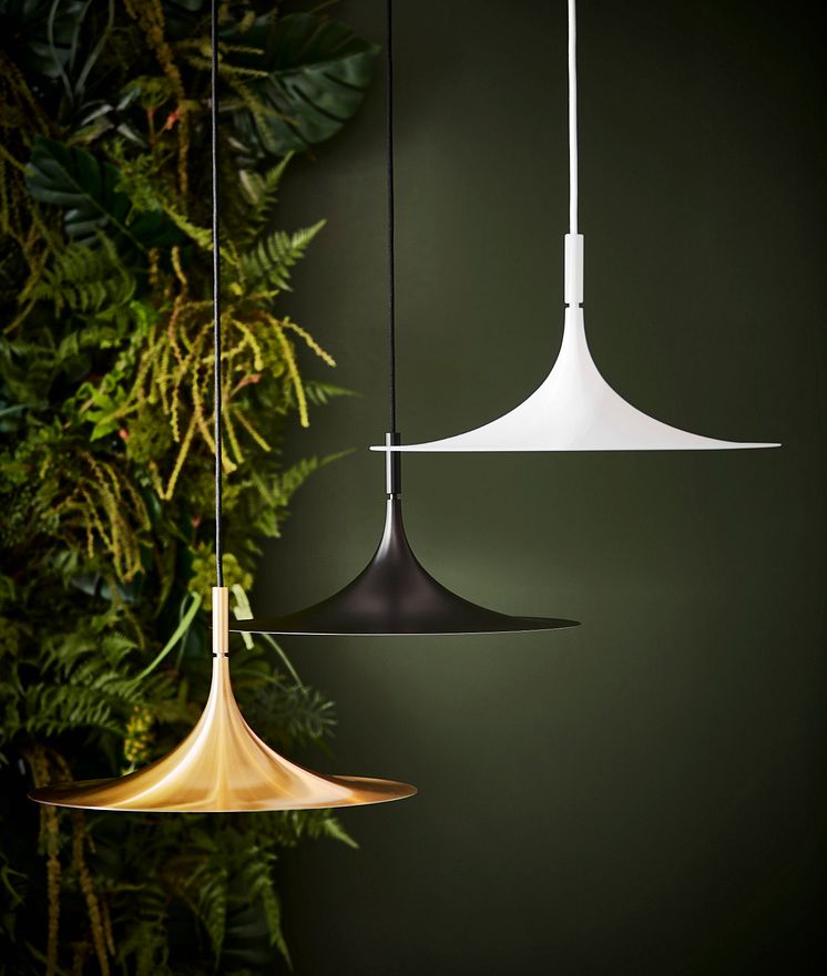 NYHET Taklampa True i metall med mässingfinish, Ø 48, H 25 cm 1.795·, i svart eller vit metall 1.495·
