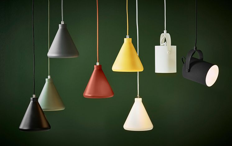 Fönsterlampa Uma i lackerad metall med textilsladd, svart, grön, mörkgrå, rost, gul eller vit, Ø 18, H 20,5 cm 249· NYHET Fönsterlampa Julius i vit eller svart metall, Ø 12, H 28 cm