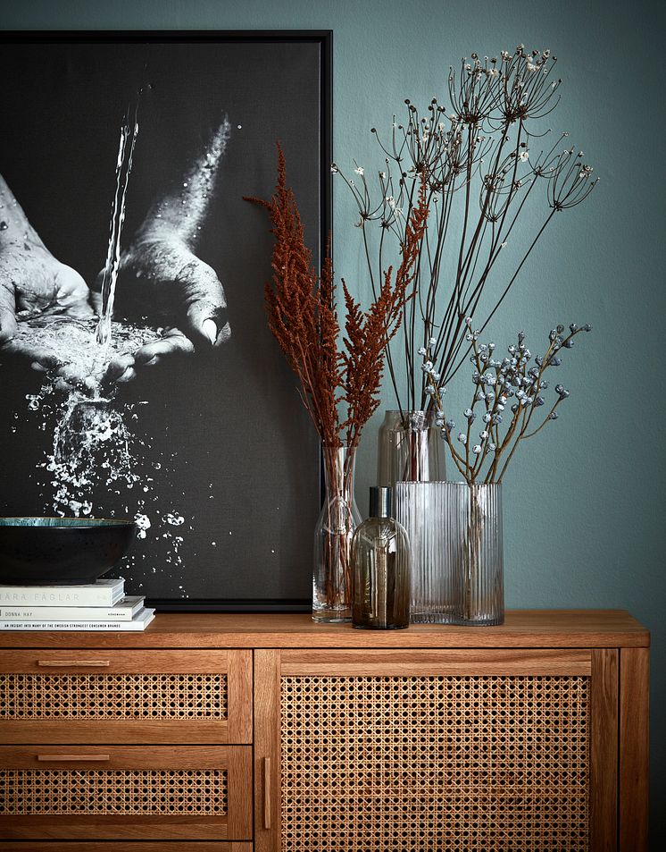 NYHET Skänk Viborg i lackerad ekfaner/naturrotting, 3 lådor och 2 dörrar, B 190, D 45, H 79 cm 7.995·