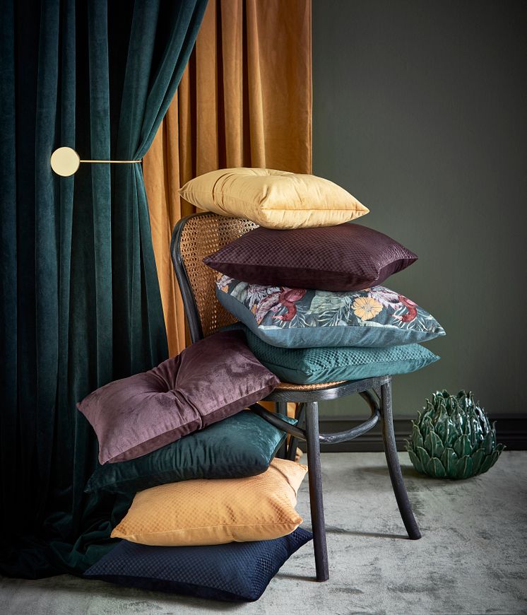 fr. 49· Sammetskudde med knapp, fiberinnerkudde ingår, 30x50 cm 79· Gardin, 2-pack, 135x250 cm 299·