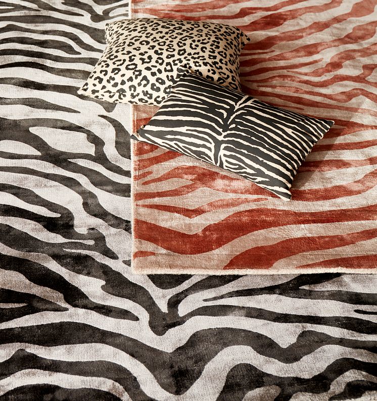 NYHET Viskosmatta Zebra med zebramönster, silver/svart eller beige/korall, 160x230 cm