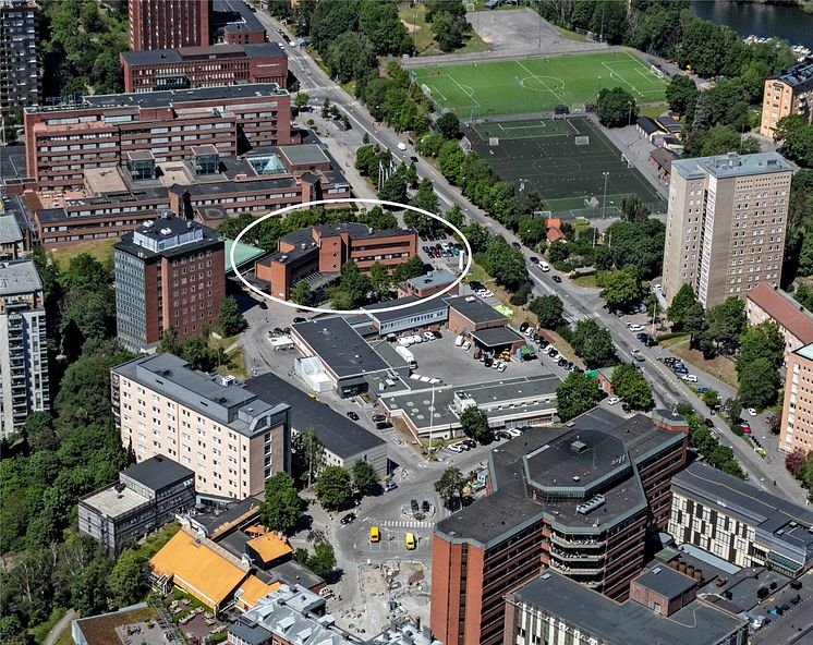 Byggnad 04 och byggnad 05 på S:t Görans sjukhusområde. Foto: Locum AB.