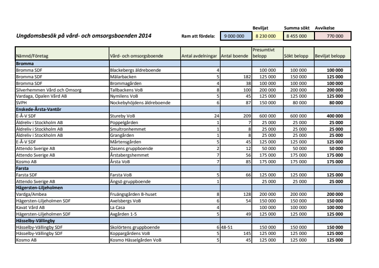 Fördelade medel per stadsdel