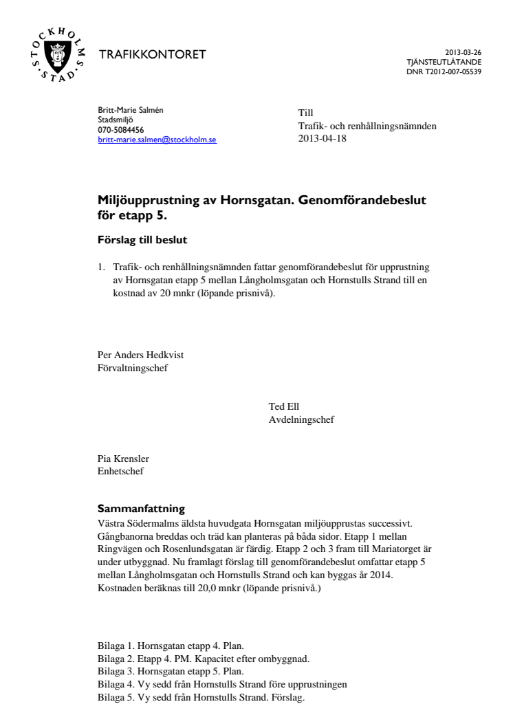 – Upprustningen fortsätter nu genom mer plats för uteserveringar och gående, fler cykelparkeringar och träd. Redan nu kan vi se att förändringarna på Hornsgatan uppskattas av många stockholmare och besökare, säger Ulla Hamilton (M), trafikborgarråd i Stockholms stad.