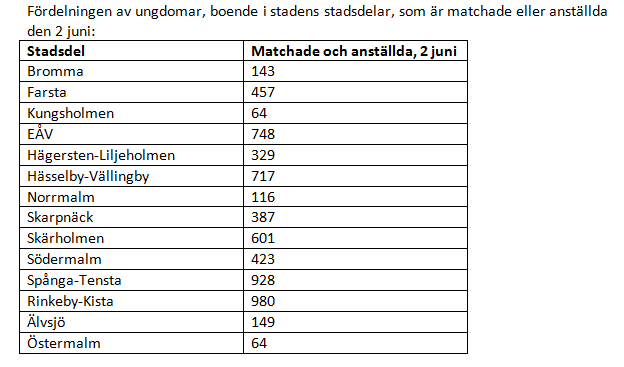 Sommarjobb fördelat på stadsdel, Stockholms stad