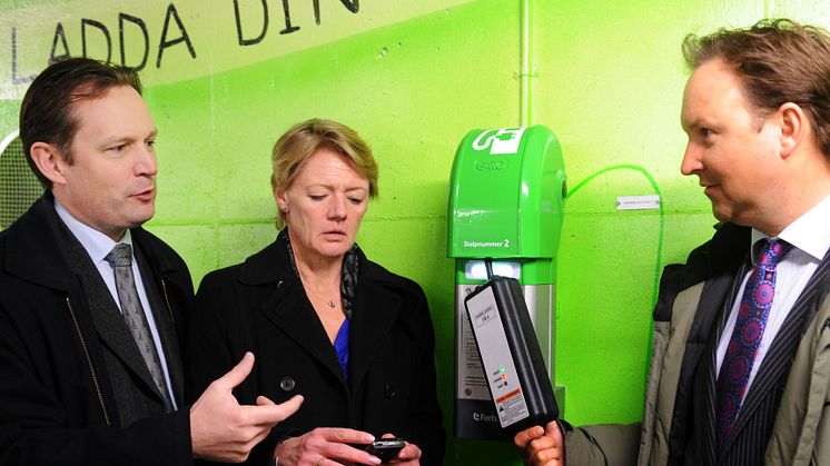 I parkeringshuset Vartofta på Södermalm öppnar Stockholm Parkering och Fortum i dag de första laddstolparna där laddning, betalning och identifiering av lediga stolpar sker med hjälp av mobilen. Ett sms skickas iväg när laddningen påbörjas respektive avslutas.