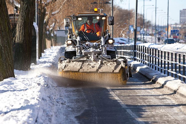 Två stycken specialanpassade snöröjningsmaskiner kommer under 2013 att testas på utvalda sträckor på gång- och cykelbanor i väster- och söderort. Maskinerna är ett komplement till den ordinarie snöröjningen. En maskin har redan kommit och hunnit snöröja den utvalda provsträckan i västerort. Den andra maskinen som ska testas i söderort väntas anlända senare i vinter.