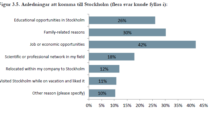 Den största andelen av de som kommer till Stockholm från andra delar av världen gör det pga av arbetet. Det visar en undersökning som Stockholms stad tagit fram och som presenteras vid ett frukostmöte på Stockholms Handelskammare idag. 86 procent av de internationella talanger som flyttar till Stockholm för att arbeta trivs och är nöjda med livet här.