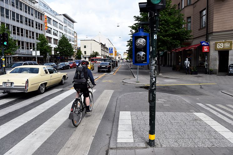 • Trafikborgarråd Ulla Hamilton inviger möblering och åtgärder för bättere framkomlighet på Götgatan (Foto: Sven Lindwall)