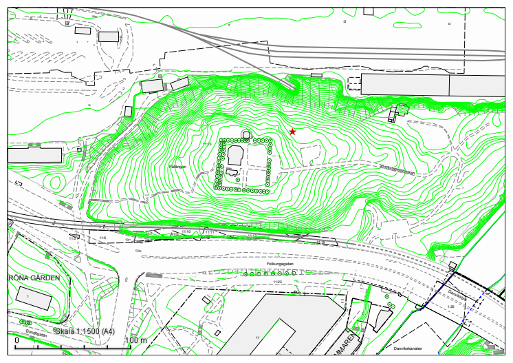 • Kartbild över placering av minnesträd för Per Anger