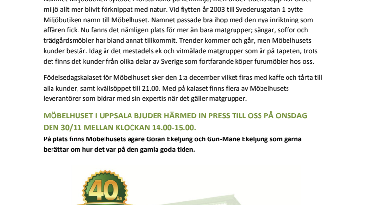 MÖBELHUSET I UPPSALA BJUDER HÄRMED IN PRESS TILL OSS PÅ ONSDAG DEN 30/11 MELLAN KLOCKAN 14.00-15.00.