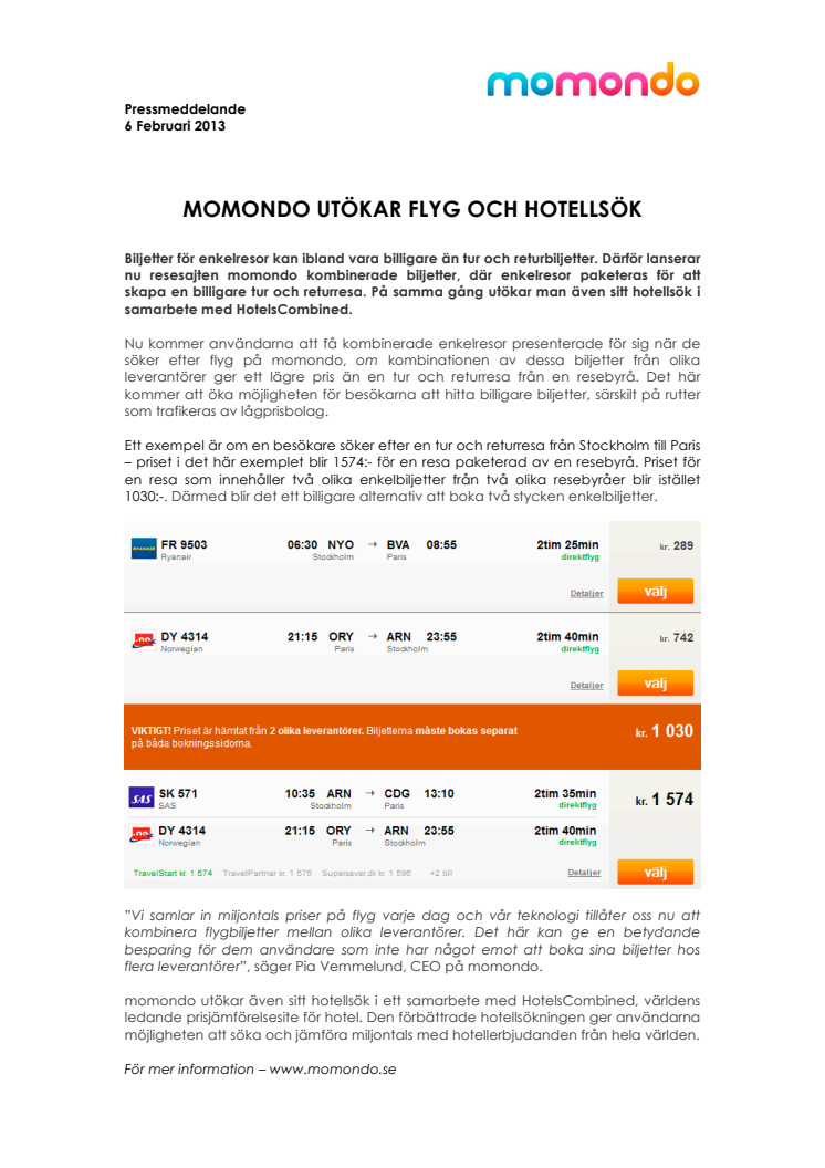 MOMONDO UTÖKAR FLYG OCH HOTELLSÖK