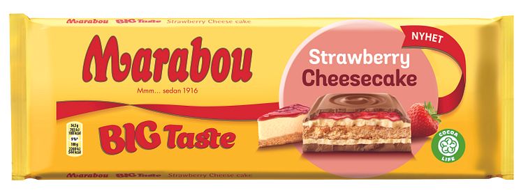 Nu kommer en ny stor chokladkaka från Marabou med krämig cheescake, krispiga kex och läcker jordgubbspuré toppad med härlig mjölkchoklad. Helt enkelt en härlig smak av sommaren.