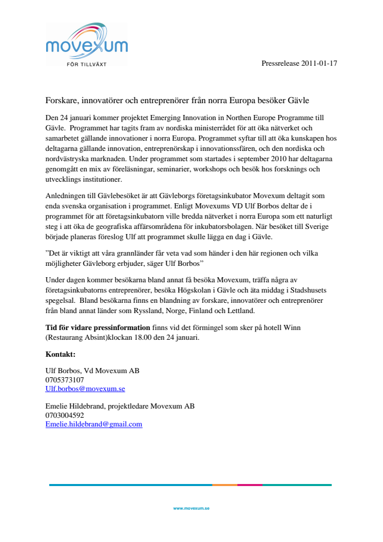 Forskare, innovatörer och entreprenörer från norra Europa besöker Gävle