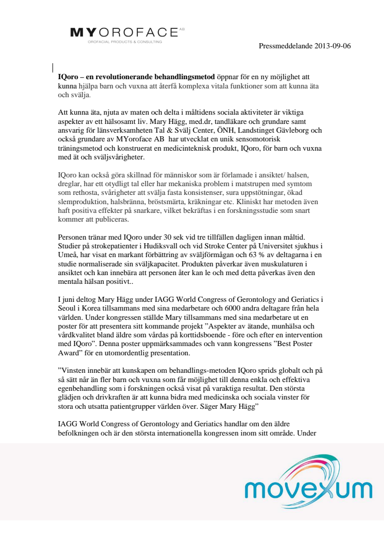IQoro – en revolutionerande behandlingsmetod öppnar för en ny möjlighet att kunna hjälpa barn och vuxna att återfå komplexa vitala funktioner som att kunna äta och svälja.