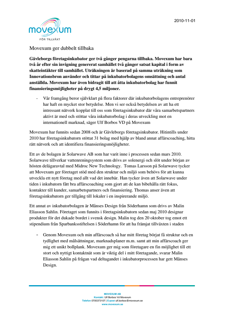 Movexum ger dubbelt tillbaka