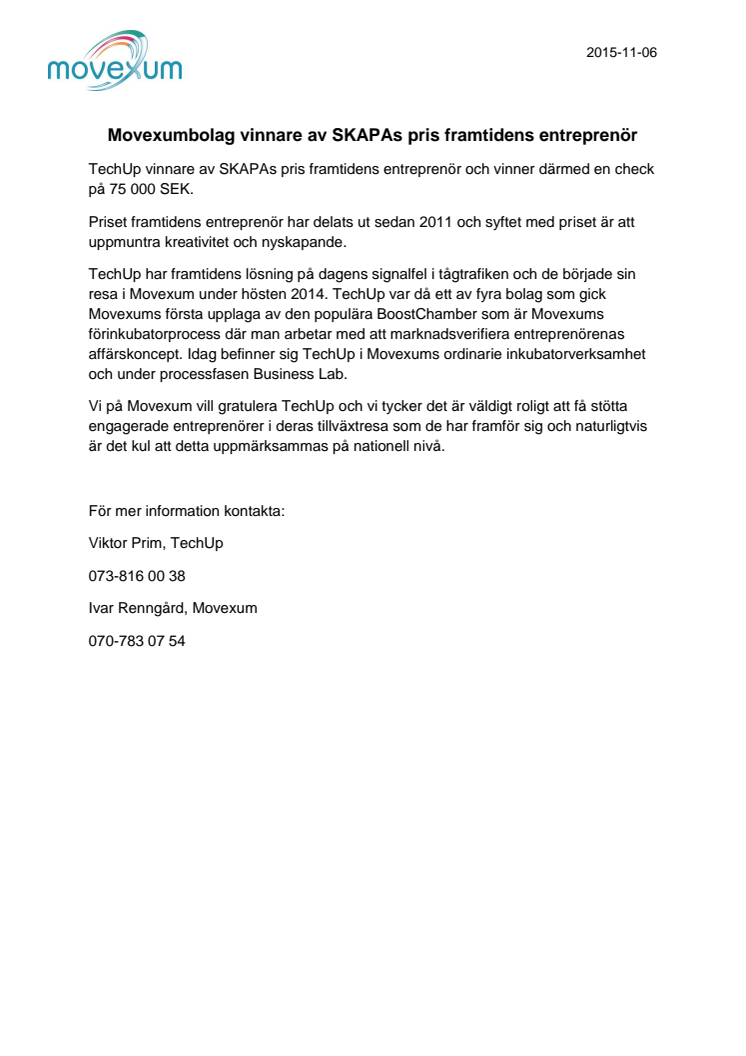 Movexumbolag vinnare av SKAPAs pris framtidens entreprenör