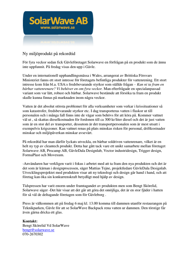 För fyra veckor sedan fick Gävleföretaget Solarwave en förfrågan på en produkt som de ännu inte uppfunnit. På fredag visas den upp i Gävle.