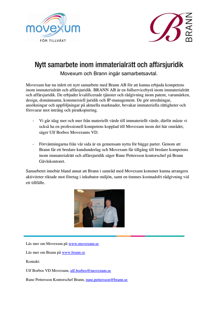 Movexum har nu inlett ett nytt samarbete med Brann AB för att kunna erbjuda kompetens inom immaterialrätt och affärsjuridik.