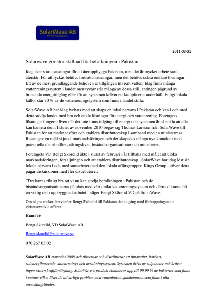 SolarWave gör stor skillnad för befolkningen i Pakistan