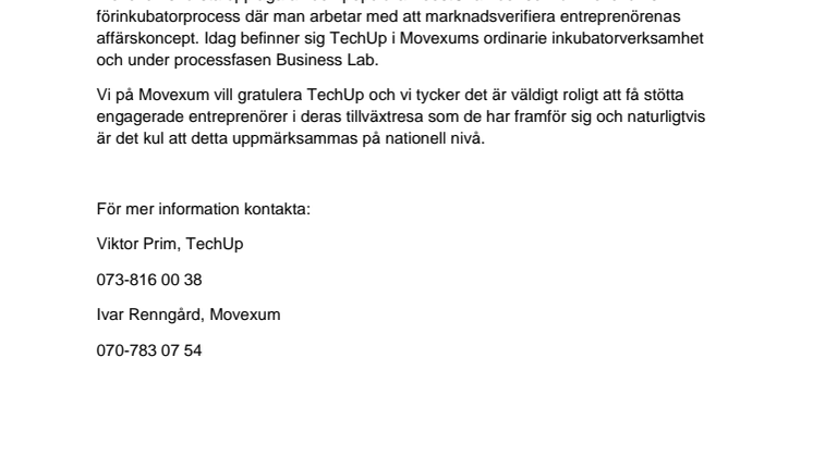 Vi på Movexum vill gratulera TechUp och vi tycker det är väldigt roligt att få stötta engagerade entreprenörer i deras tillväxtresa som de har framför sig och naturligtvis är det kul att detta uppmärksammas på nationell nivå.