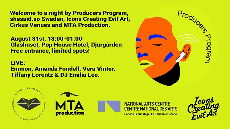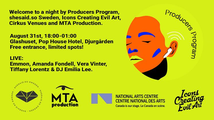 Den 31 augusti bjuder Producers Program, shesaid.so Sweden, Icons Creating Evil Art, Cirkus Venus och MTA Production in till AW och bransch-mingel på Glashuset, Pop House Hotel på Djurgården. Fri entré, begränsade platser.