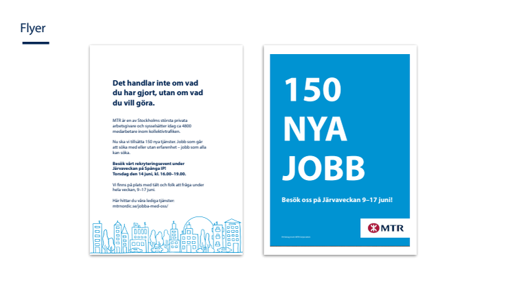 MTR driver på SLs uppdrag Tunnelbanan och Pendeltågen i Stockholm, underhåller alla tåg, och kör snabbtåg mellan Stockholm och Göteborg. Idag är MTR den tredje största privata arbetsgivaren i Stockholms stad och har verksamhet i stora delar av länet. En försiktig uppskattning visar att medarbetarna representerar 100 nationaliteter och i höst behövs 150 nya kollegor. På torsdagen 14 juni håller därför MTR ett öppet rekryteringsevent under 3 timmar där alla som är intresserade kan komma och lyssna, ”speed-dejta” en rekryterare och mingla.