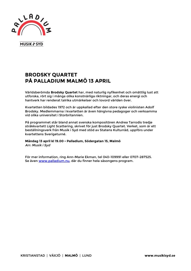 Brodsky Quartet på Palladium Malmö 13 april