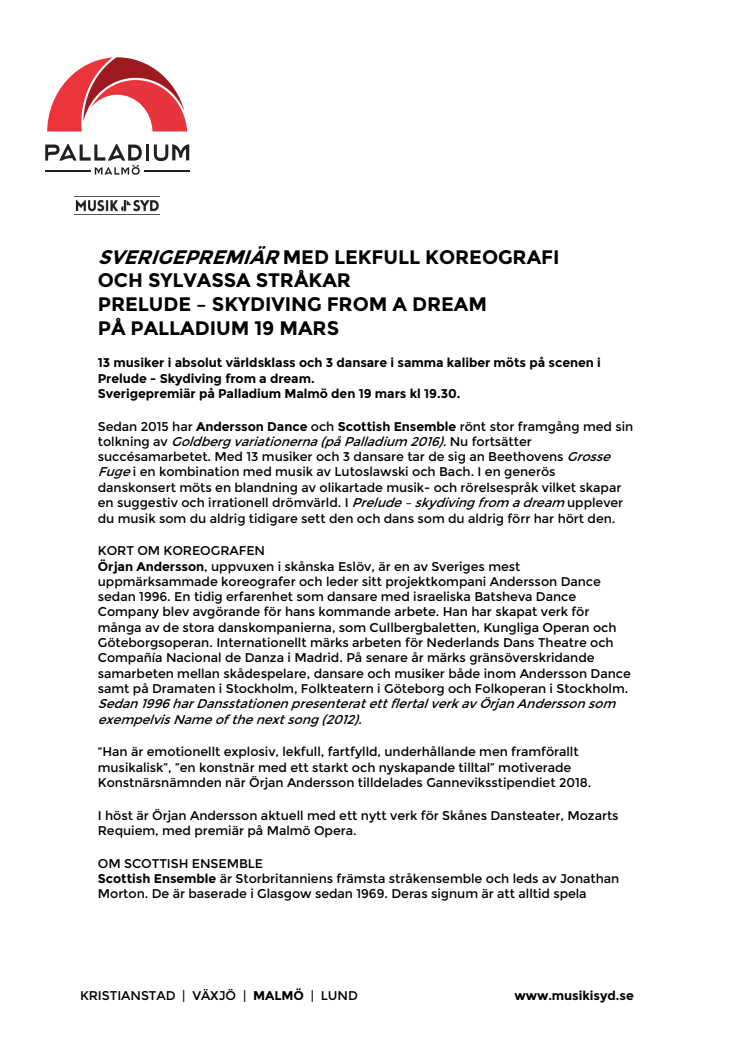 Sverigepremiär med lekfull koreografi och sylvassa stråkar – Prelude - Skydiving from a dream på Palladium Malmö den 19 mars