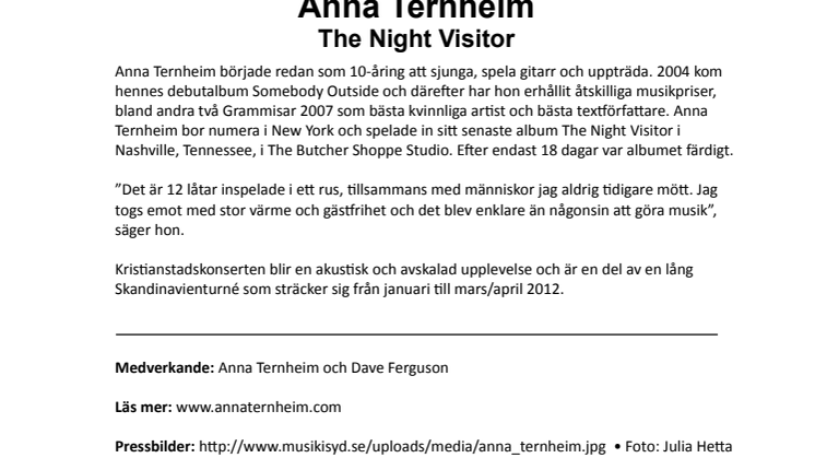 Pressbilder: http://www.musikisyd.se/uploads/media/anna_ternheim.jpg • Foto: Julia Hetta