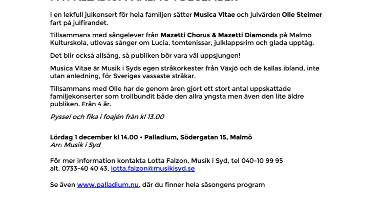 Lördag 1 december kl 14.00 • Palladium, Södergatan 15, Malmö