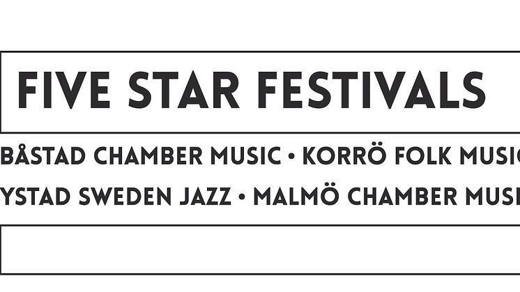 Tillsammans med fem av landets förnämsta och mest betydelsefulla festivaler lanserar Musik i Syd Five Star Festivals. De festivaler som ingår under denna rubrik är Båstad Chamber Music, Korrö Folkmusikfestival, Ystad Sweden Jazz Festival, Malmö Chamber Music och Lund Choral Festival. Genom Five Star Festivals vill vi lyfta fram och synliggöra dessa fem festivaler och på så sätt medverka till att stärka bilden av södra Sverige som en stark och attraktiv kulturregion.