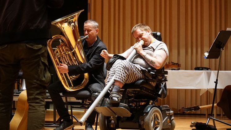 Musica Vitae och ShareMusic & Performing Arts, nationellt kunskapscenter för konstnärlig utveckling och inkludering, har under en vecka i september gjort ett konstnärligt labb tillsammans. Orkestern mötte då musiker från ShareMusic som har helt andra erfarenheter och olika funktionsförutsättningar, de använder sig även av andra typer av instrument som inte är så vanliga i traditionella orkestrar. Nu är det dags för musikerna att mötas igen och den 12-16 oktober genomförs ett nytt labb och vi bjuder in press att vara med och höra resultatet av våra kreativa experiment, den 15 oktober klockan 13.00 på Nygatan 6 i Växjö. Det blir garanterat musik vi aldrig hört förut!