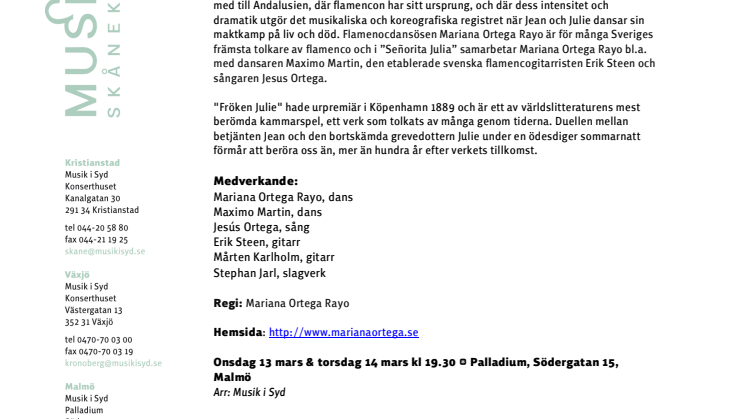 Mariana Ortega Rayo är för många Sveriges främsta tolkare av flamencooch i ”Señorita Julia” samarbetar