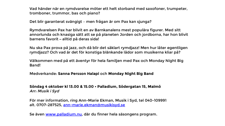 Rymdjazz med Pax och Monday Night Big Band på Palladium 4 oktober