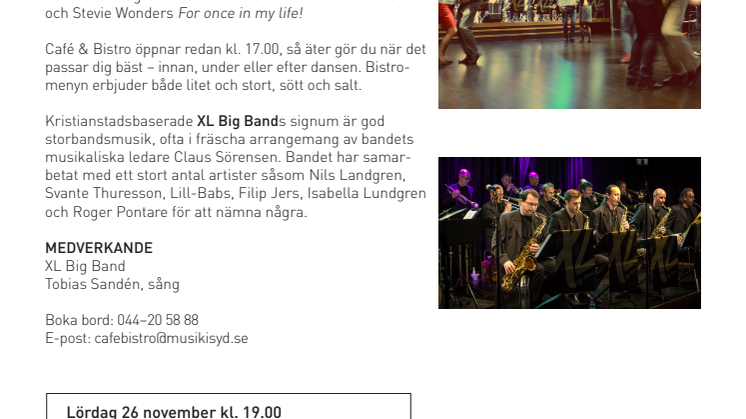 Lördag 26 november bjuder Kulturkvarteret återigen upp till dans, på scen står Kristianstads eget XL Big Band!