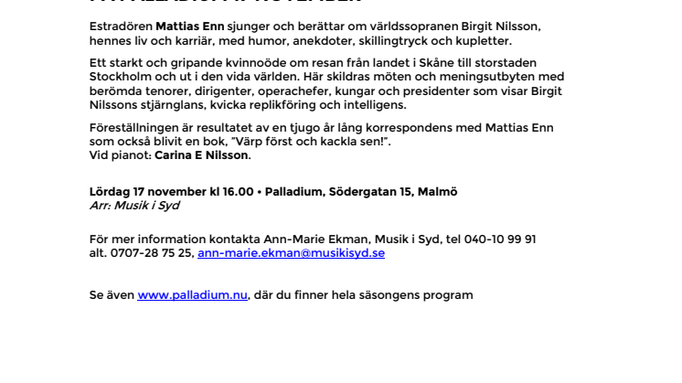 Värp först och kackla sen! Mattis Enn hyllar Birgit Nilsson 100 år på Palladium Malmö 17 november