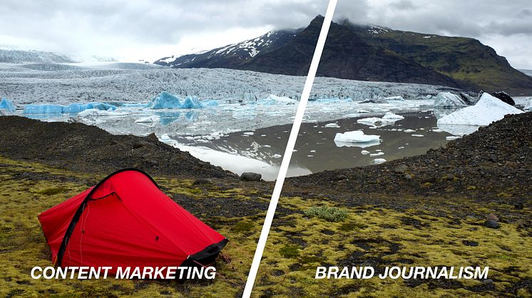 Svenska Röda Tält AB är ett tydligt exempel på skillnaderna mellan content marketing och varumärkesjournalistik. När företaget använder sig av content marketing pratar de om sin produkt - det röda tältet - i ett intressant sammanhang men när de går över till varumärkesjournalistik är tältet borta.