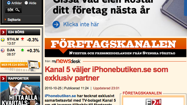 MyNewsdesk lanserar nytt partnersamarbete för direktpublicering av företagsnyheter på nyhetssajten E24.