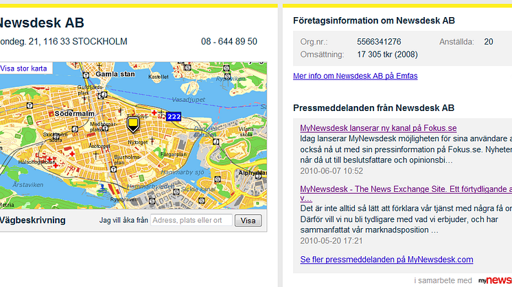 Eniro.se och MyNewsdesk inledde nyligen ett samarbete där Gula Sidorna publicerar pressinformation på sina företagskort.
