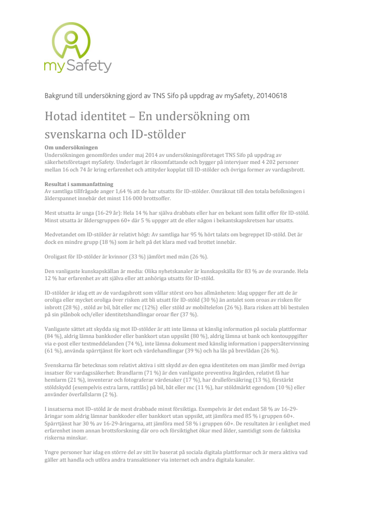 För första gången finns nu ett mått på omfattningen av de snabbt ökade fallen av ID-stölder. I en omfattande intervjuundersökning utförd av TNS Sifo anger 1,64 procent av de svarande i åldern 16 – 74 år att de har blivit utsatt för ID-stöld.