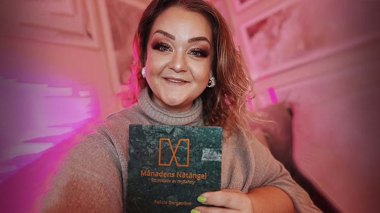 Försäkringsbolaget mySafety tilldelar influencern Felicia Bergström utmärkelsen Månadens Nätängel i januari för hennes godhjärtade arbete på sociala medier. Genom vältänkta inlägg, sunda resonemang och inkluderande texter främjar Felicia en mer trivsam närvaro för människor på nätet.