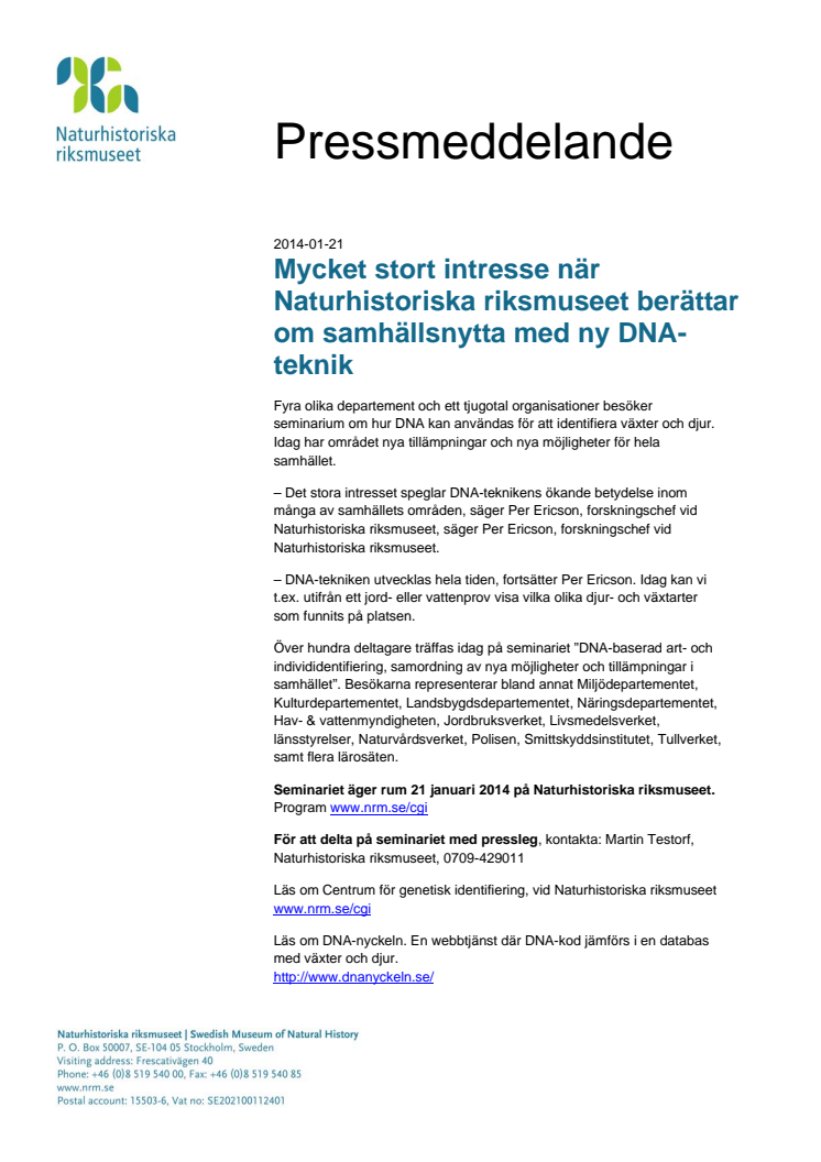 Mycket stort intresse när Naturhistoriska riksmuseet berättar om samhällsnytta med ny DNA-teknik