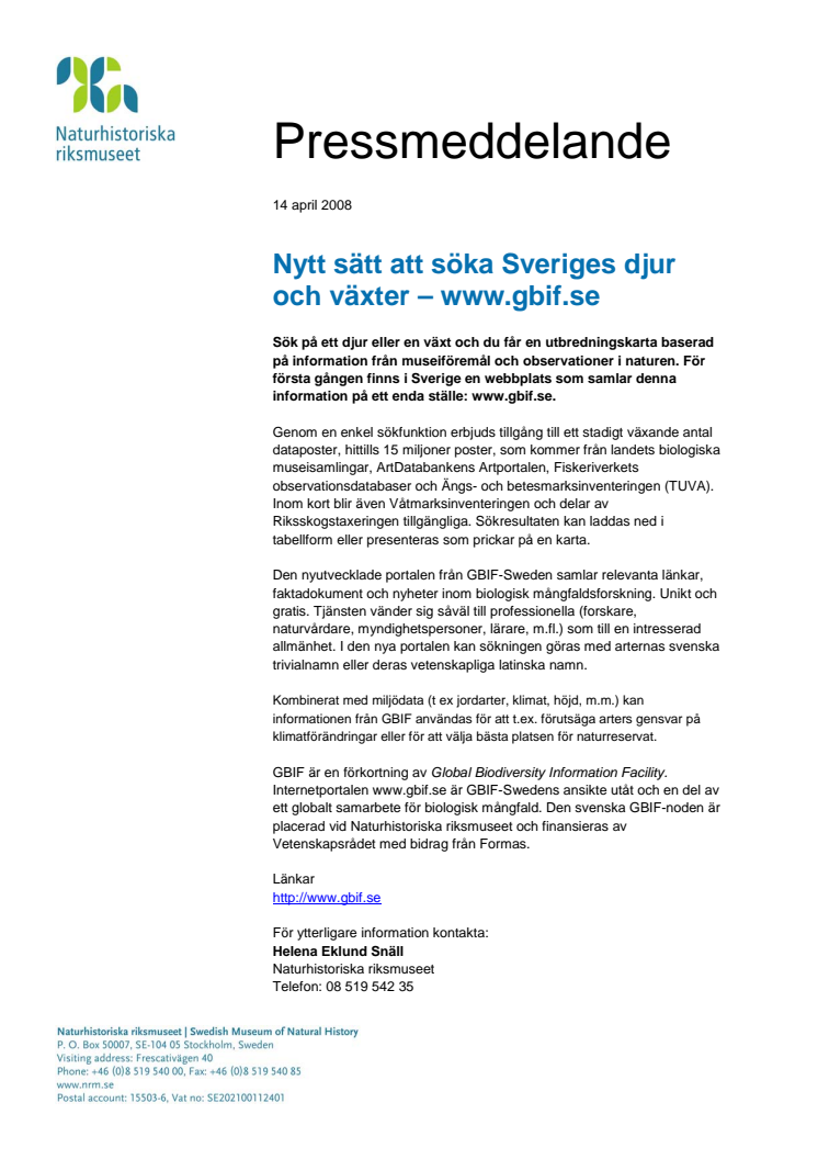 Nytt sätt att söka Sveriges djur och växter — www.gbif.se