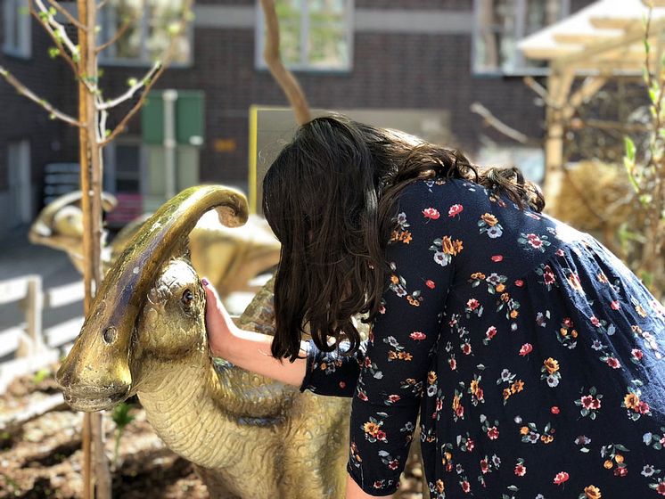 Barn klappar dinosaurie