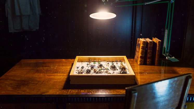 Scenariot i rummet har inspirerats av verkliga utmaningar som museets forskare möter i sin vardag. Hur stor är insektspopulationen idag? Hur påverkas andra arter av att en art försvinner? Hur stort är hotet mot den biologiska mångfalden?