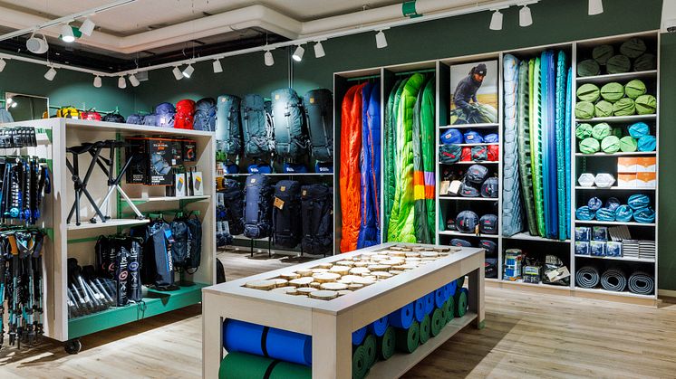 Butiken kommer utöver klättervägg bland annat att utrustas med en stor Fjällrävenavdelning, ett sortiment för uthyrning, en avdelning för vård och reparation samt olika inslag som t.ex. en naturbänk för möjlig testning av liggunderlag på ojämnt underlag.