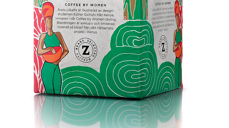 − Årets julkaffe är ett resultat av våra hållbarhetsinitiativ i Östafrika med fokus på att engagera så många som möjligt inom hållbar kaffeodling. Alla behövs för att säkra kaffets framtid. Julkaffedesignen baseras på Esther Gichuhis kraftfulla och vackra illustration som tolkar det moderna Afrika. Det är både roligt och viktigt för oss att stödja de kvinnliga studenternas utveckling och samtidigt ta del av deras kompetens som en del i vårt Coffee by Women innitiativ, säger Cathrine Ossborn, Marknadschef på Zoégas.