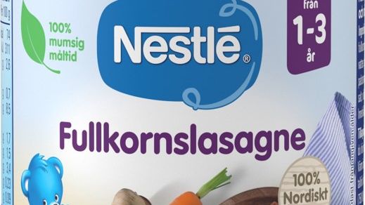 Fullkornslasagne, 1-3 år, 220 gram, Batch 4296012001, EAN-kod: 7613287924391, bäst före: 31.10.26
