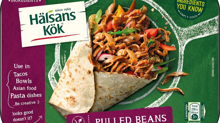 ​Allt fler väljer att äta mer vegetariskt och försäljningen av produkter som kan ersätta kött har fördubblats sedan 2014. Hälsans Kök lanserar nu nyheten Pulled Beans som baseras på sojaprotein och är helt vegansk. Pulled Beans gör det lätt för fler att välja vego eftersom den liknar kött i konsistens och har en neutral smak. Dessutom innehåller den 27 % protein av hög kvalitet som mättar länge.